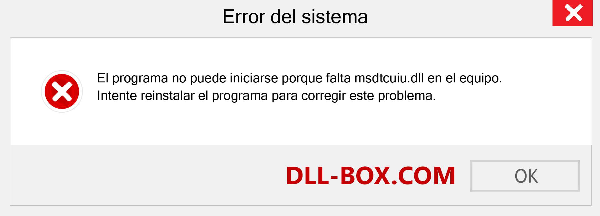 1. El programa no puede iniciarse porque falta msdtcuiu.dll en su computadora. Intente reinstalar el programa para solucionar este problema.